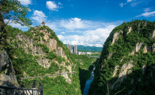 城市中的大峡谷、城市下的溶洞群、城市旁的阿蓬江,构筑大武陵唯一的极致峡谷体验、极奇峡谷景观、极美峡谷城市、极叹峡谷文化的奇幻景区。