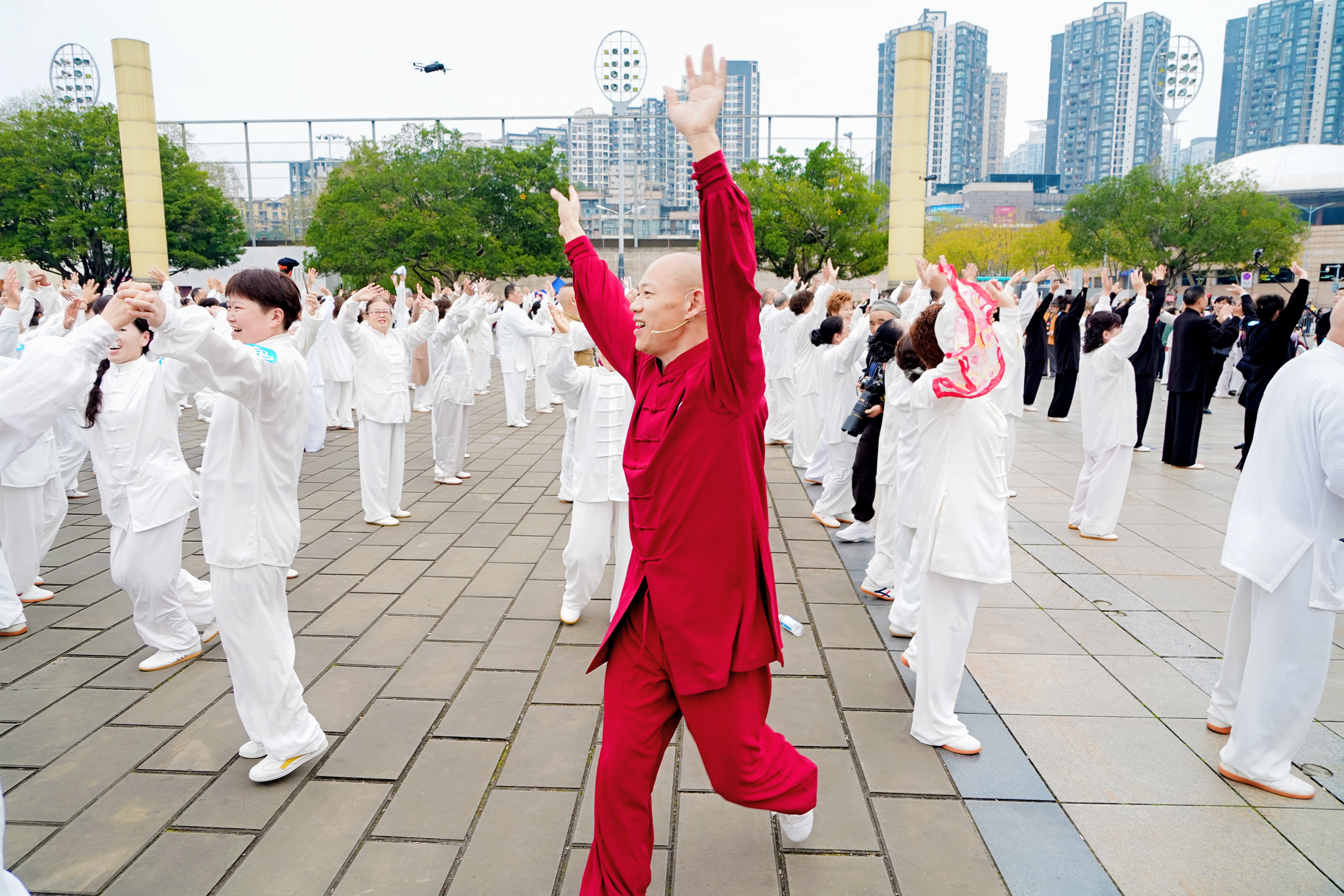 作为本次展演总教练、混元太极重庆负责人,黄亥还牵头创编巴国风太极推手五式,针对主分会场数千名参与者开展系统集训,从动作规范到对练默契全程亲力指导,以专业与执着为世界纪录成功保驾护航。